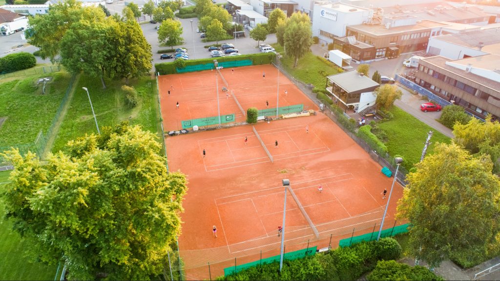 Es stehen 4x Tennisplätze zur Verfügung auf denen Mitglieder jederzeit kostenfrei die Schläger schwingen dürfen.